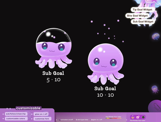 Cute Auctopus Liquid Filling Goal Widget is fully customisable for Twitch Streamlabs, TikTok Studio, and Streamelements.
