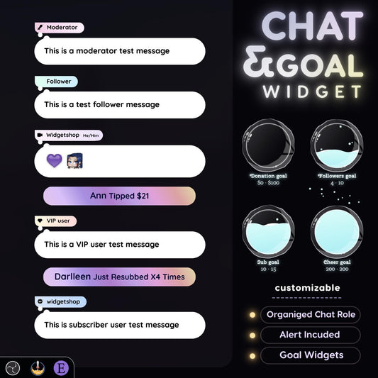 P2U Glassy Chat and Goal Widget Combo Minimal, Modern Elegant Theme • Alerts for Twitch Streams (StreamElements Only)