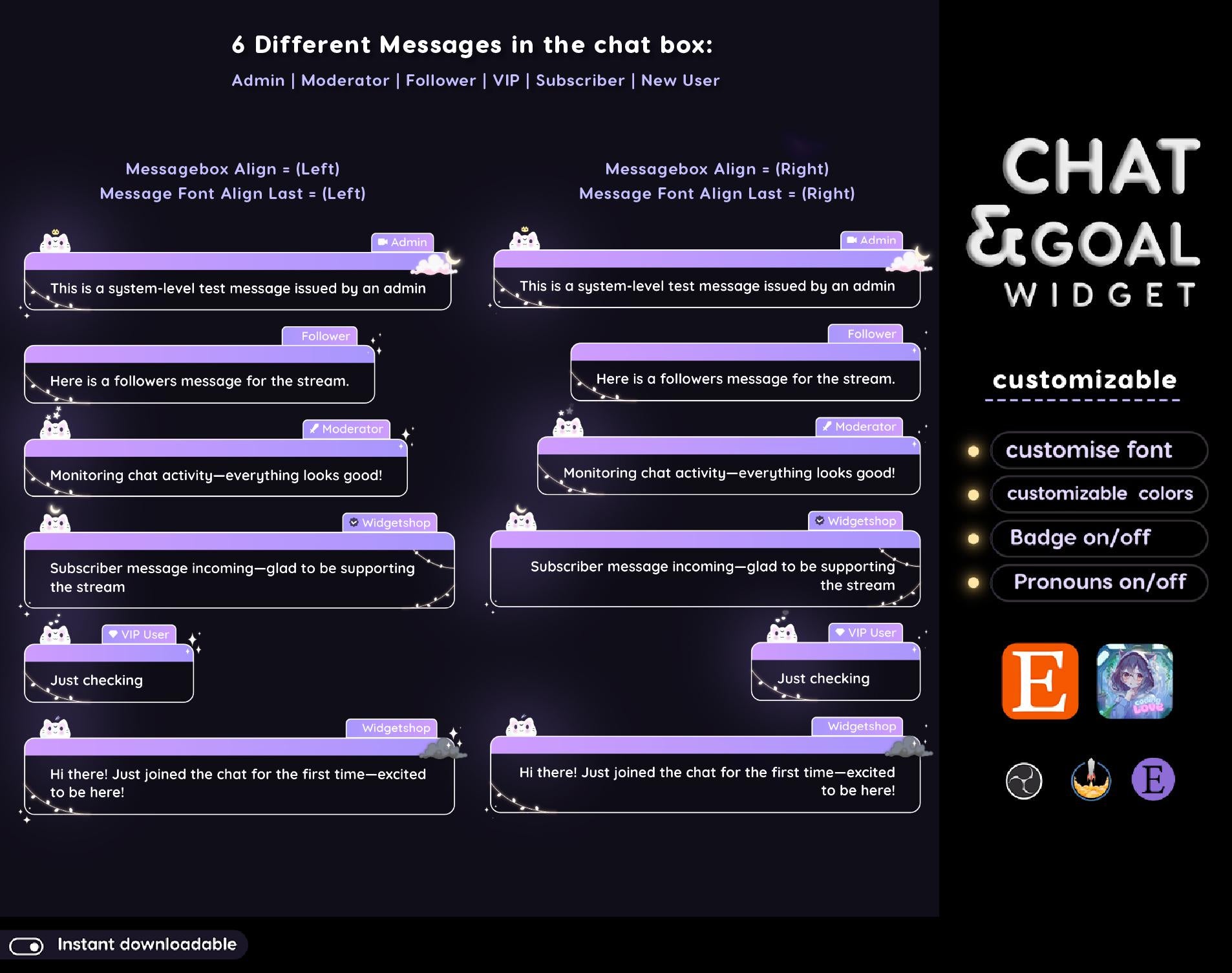💜The chat widget includes role icons for Twitch using Streamelements and for using a CSS file.