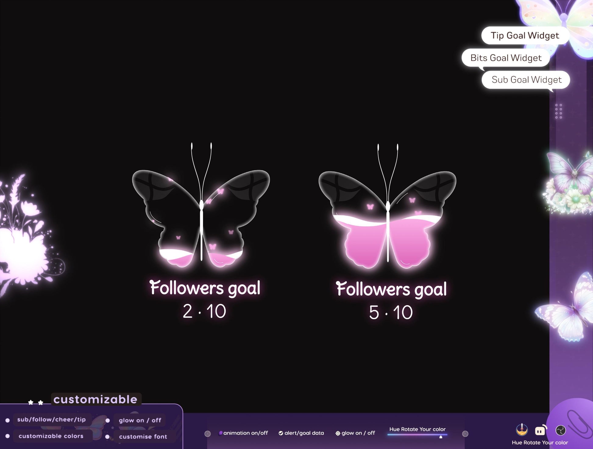 Butterfly Vibe Combo Goal | Liquid Filling Goal Widget is fully customisable for Twitch Streamlabs and Streamelements
