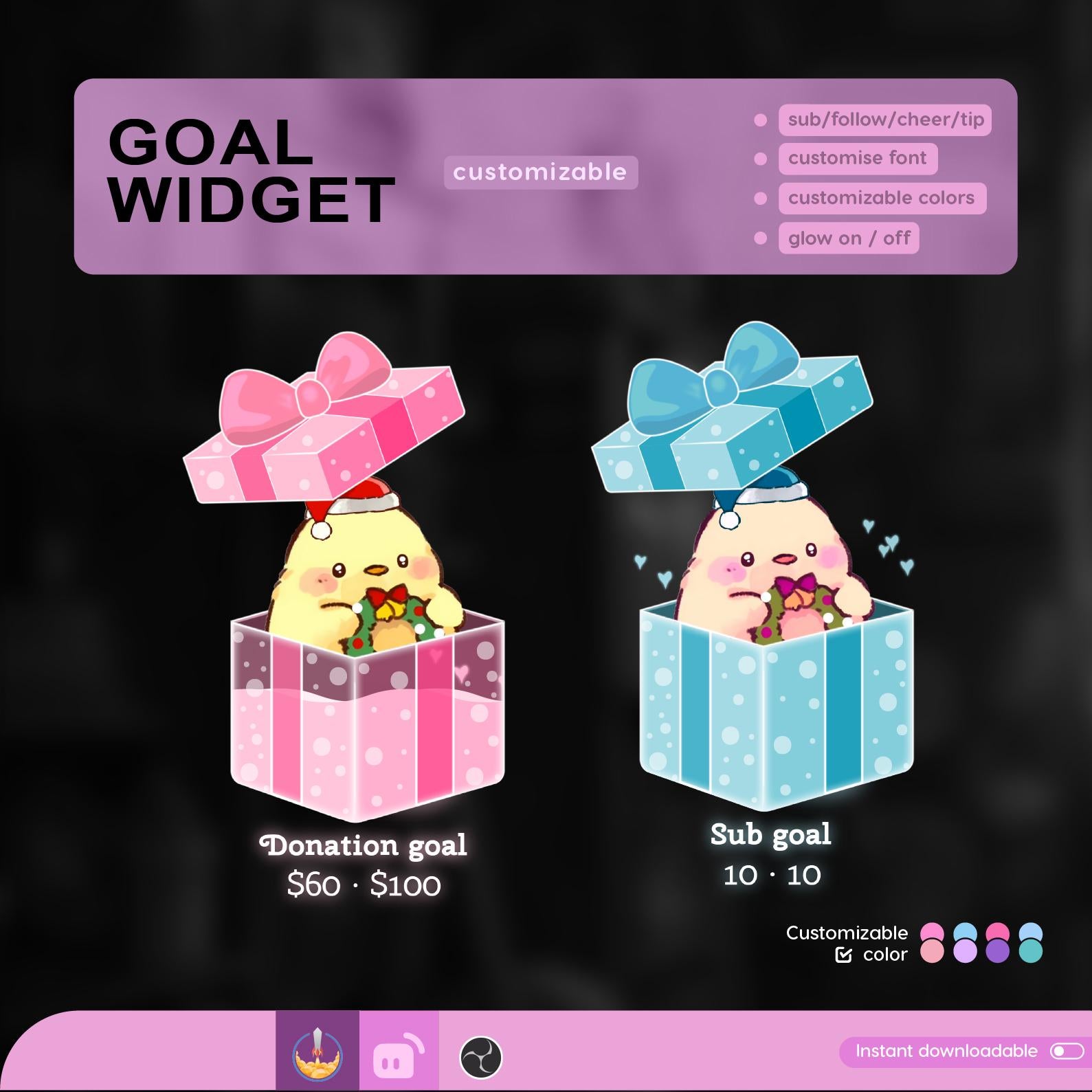 Chhristmas Gift box Filling Goal Widget is fully customisable for Twitch Streamlabs and Streamelements