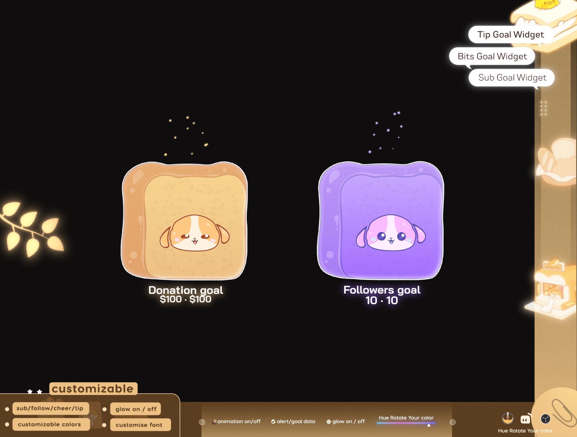 Cute Dog Toast Liquid Filling Goal Widget is fully customisable for Twitch Streamlabs and Streamelements