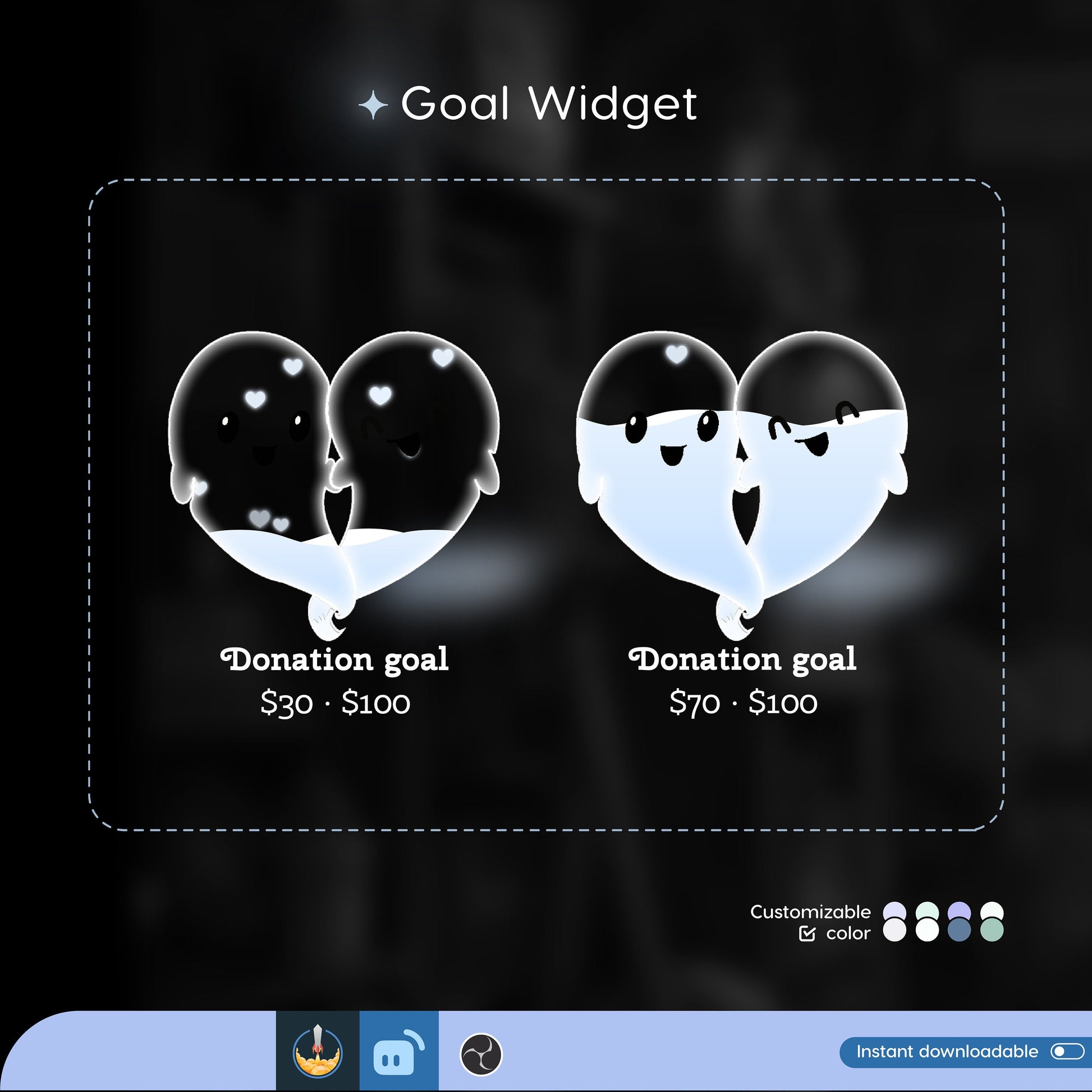 Cute Love Ghost Liquid Filling Goal Widget is fully customisable for Twitch Streamlabs and Streamelements