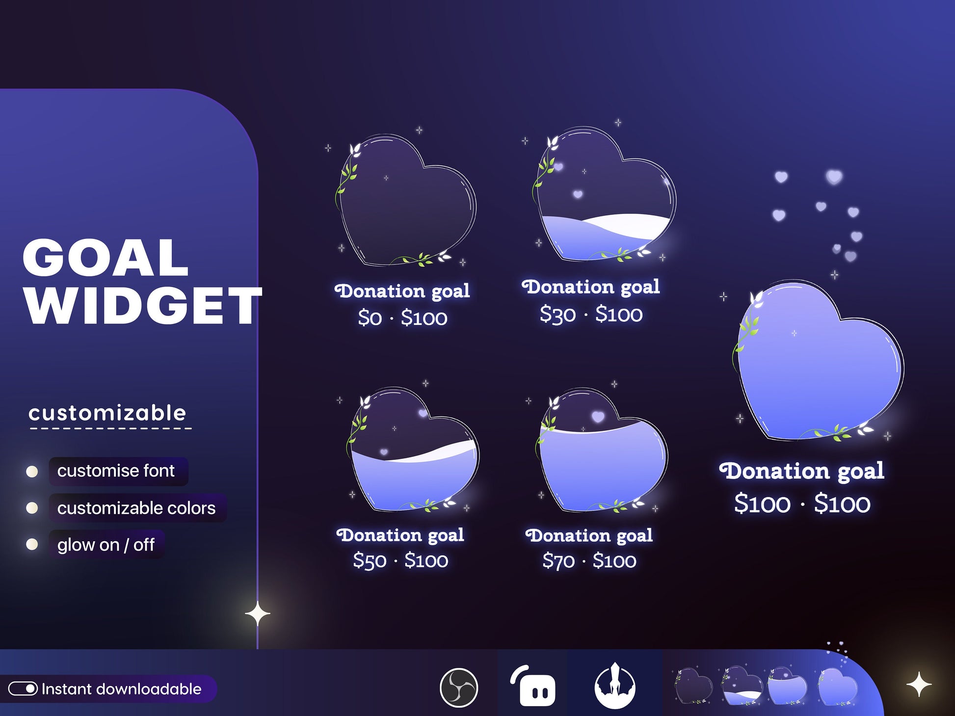 Cute Minimalist Heart Liquid Filling Goal Widget is fully customisable for Twitch Streamlabs and Streamelements.