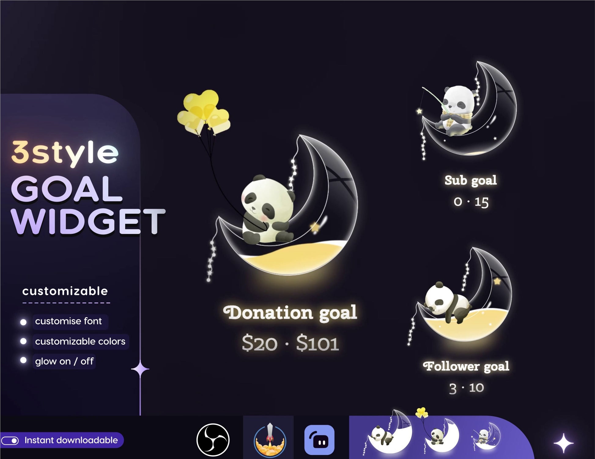 Cute Panda Combo Liquid Filling Goal Widget is fully customisable for Twitch Streamlabs and Streamelements.