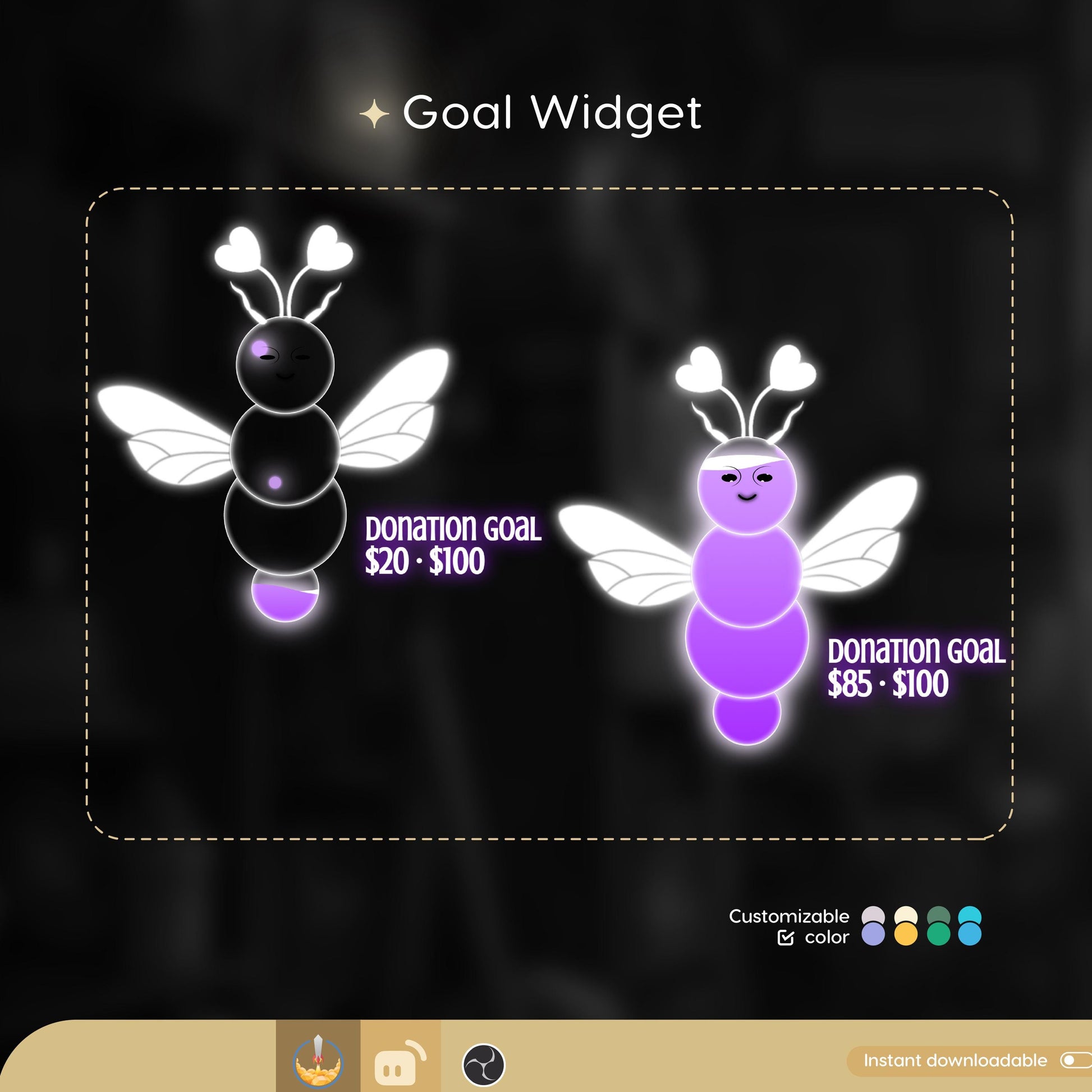 Cute Moth Goal Widget | Liquid Filling Goal Widget is fully customisable for Twitch Streamlabs and Streamelements