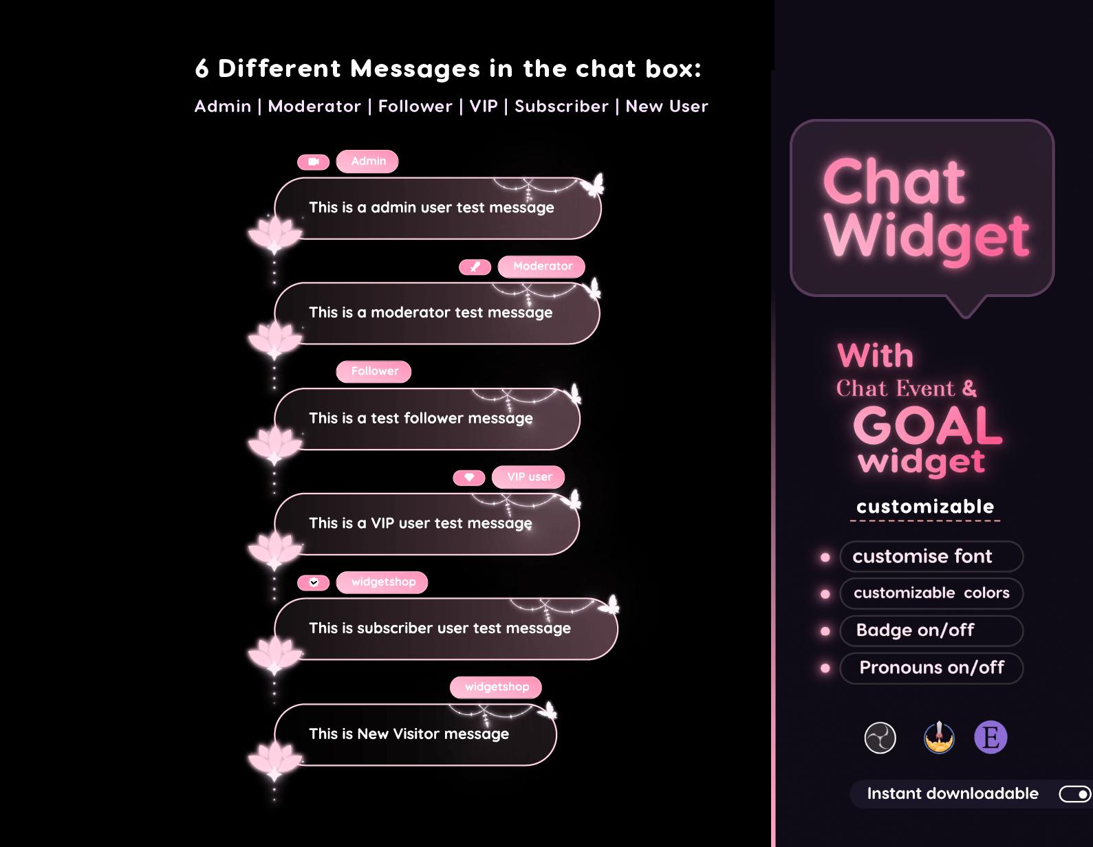 💜The chat widget includes role icons for Twitch using Streamelements and for using a CSS file.