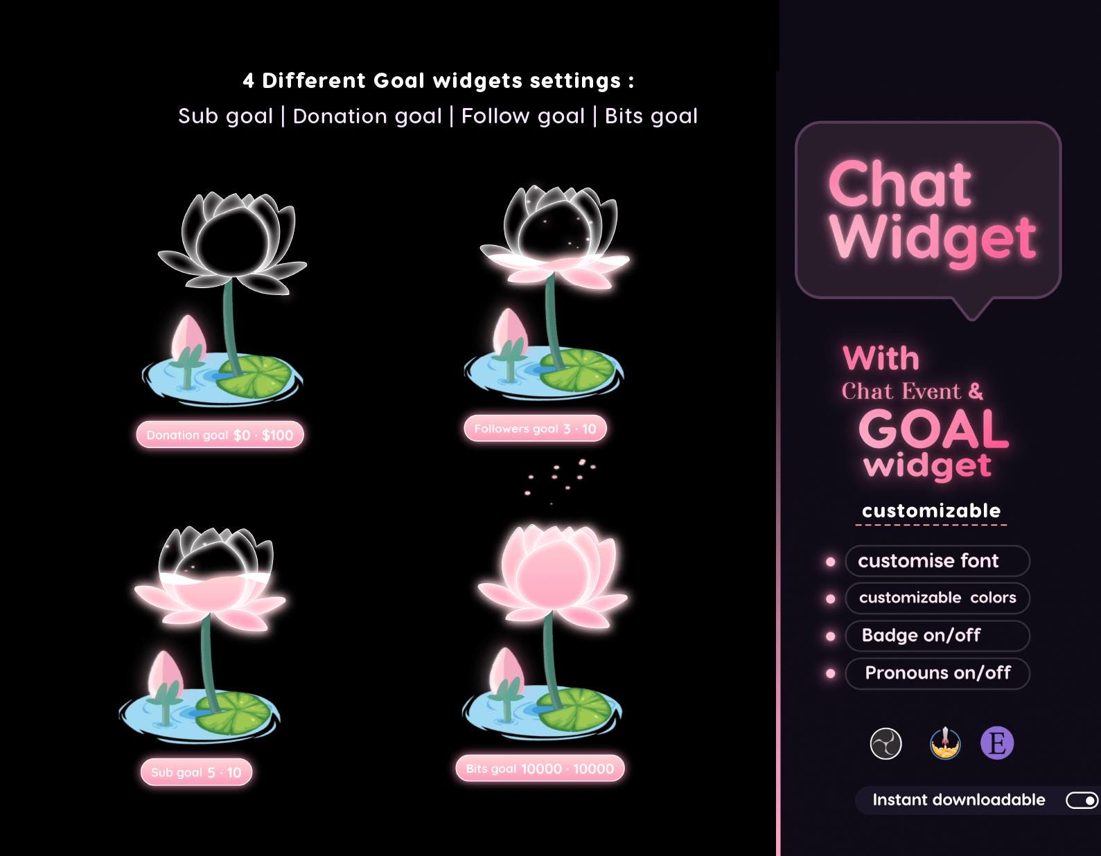 Dreamy Lotus Glass Transparent Chat and Goal Stream Widgets - Minimal, Elegant Glass Theme Clean Vibe Streamelement Only