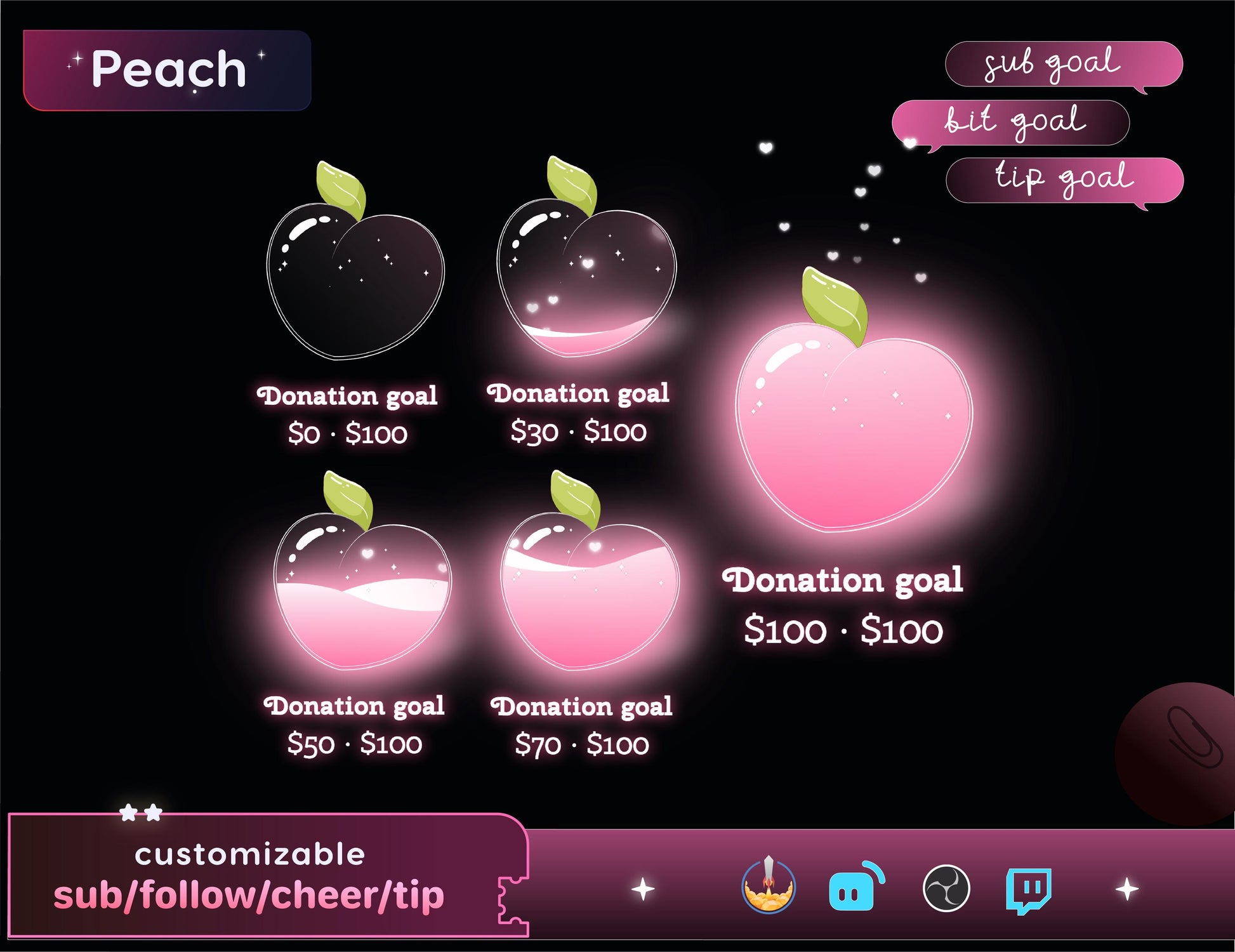 Cute Peach Glass Goal Widget-Cute Minimal Customizable Goal Widget for Twitch Streamers -Streamelements StreamLabs OBS