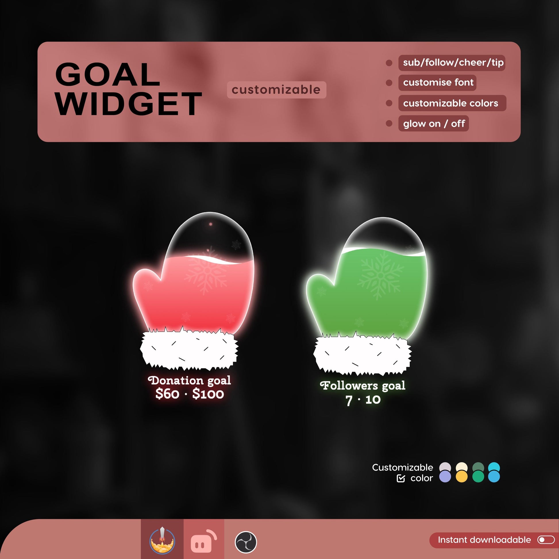 Santa Gloves Liquid Filling Goal Widget is fully customisable for Twitch Streamlabs, TikTok Studio, and Streamelements