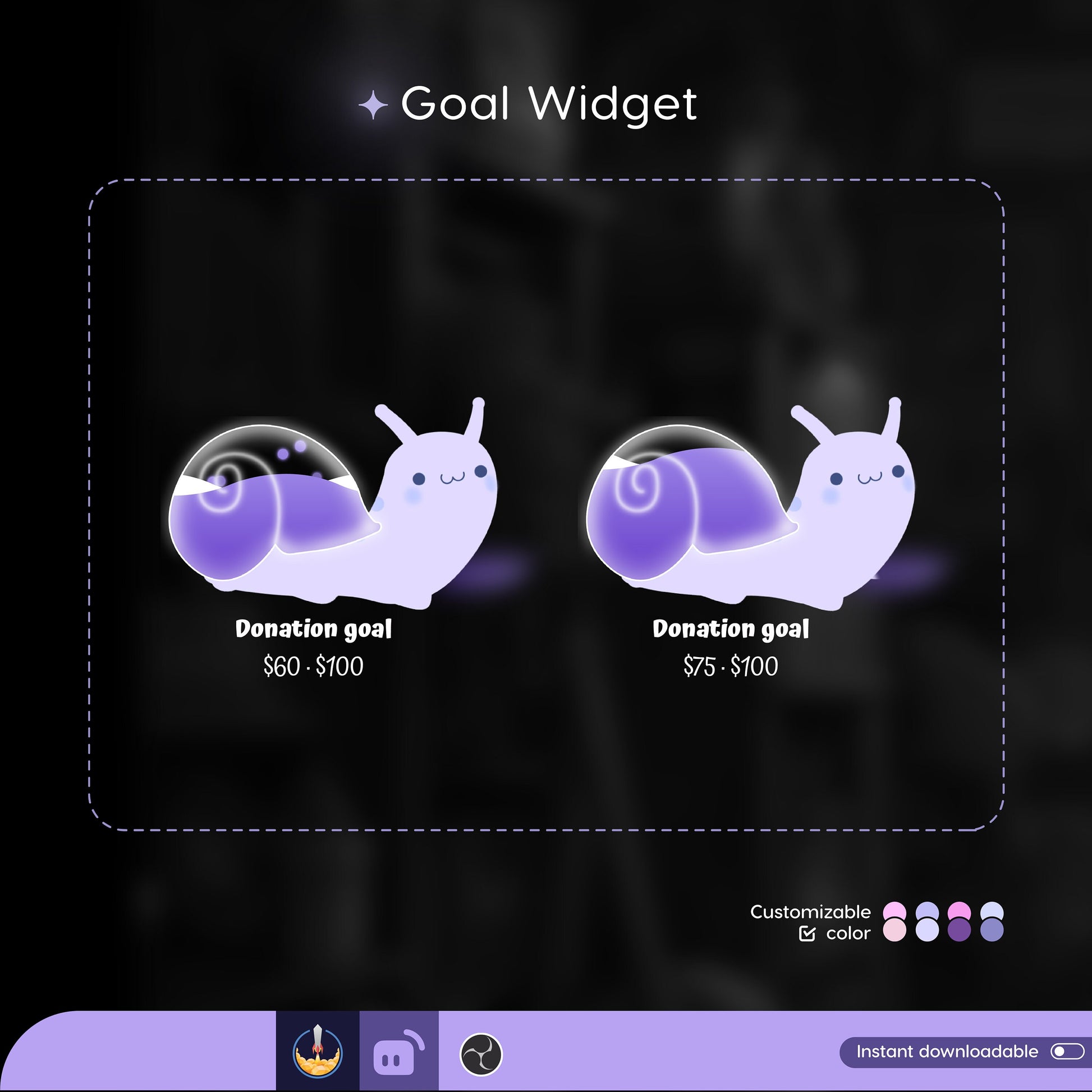 Snail Goal Widget | Cute Snail Liquid Filling Goal Widget is fully customisable for Twitch Streamlabs and Streamelements