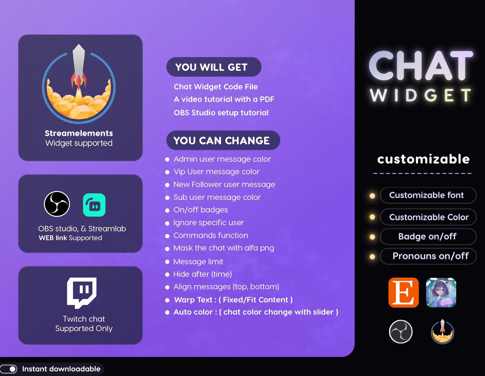 💜The chat widget includes role icons for Twitch using Streamelements and for using a CSS file.