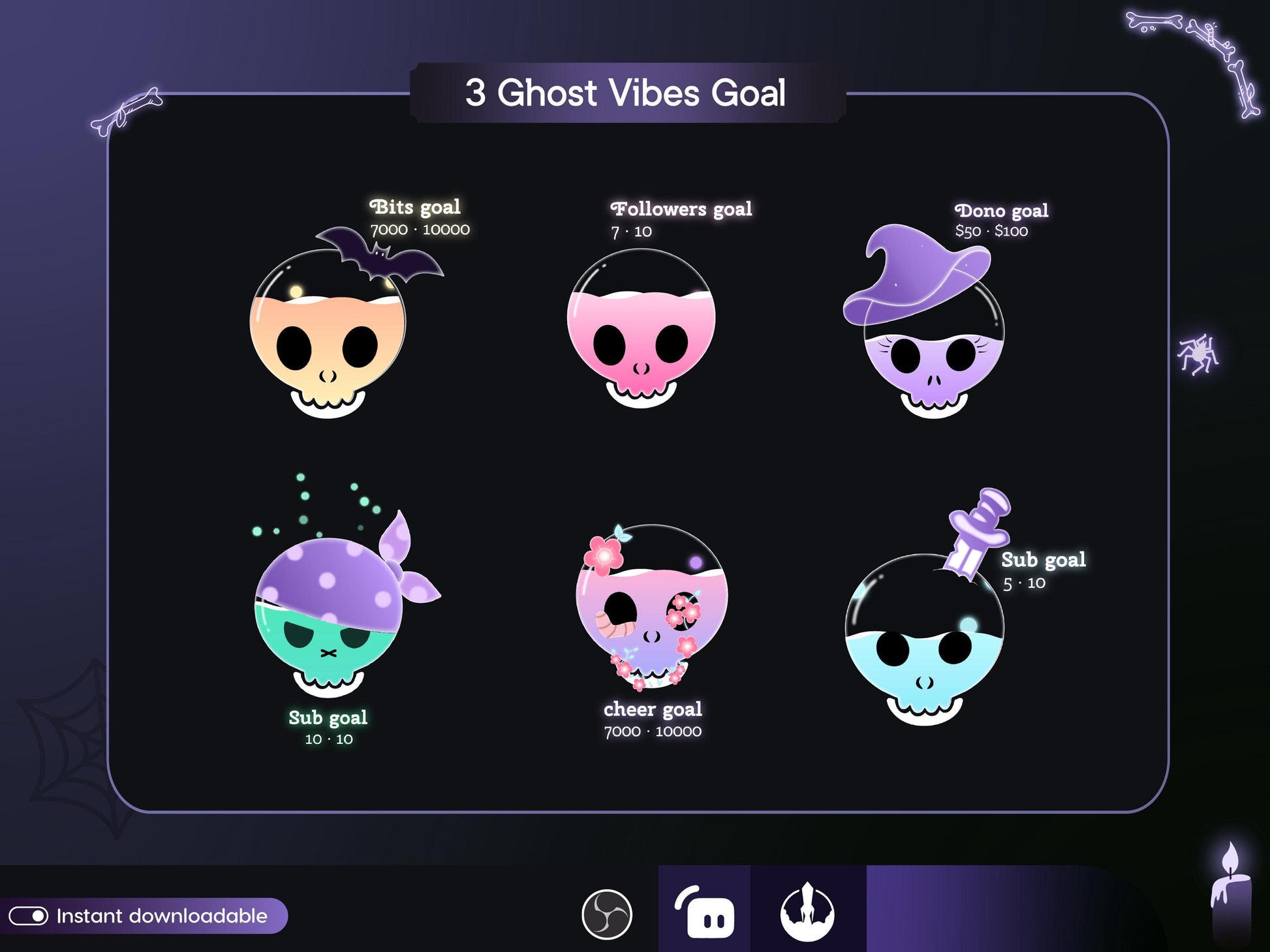 Spooky Pastel color Skull Ghost Combo Liquid Filling Goal Widget is fully customisable for Twitch Streamlabs and Streamelements