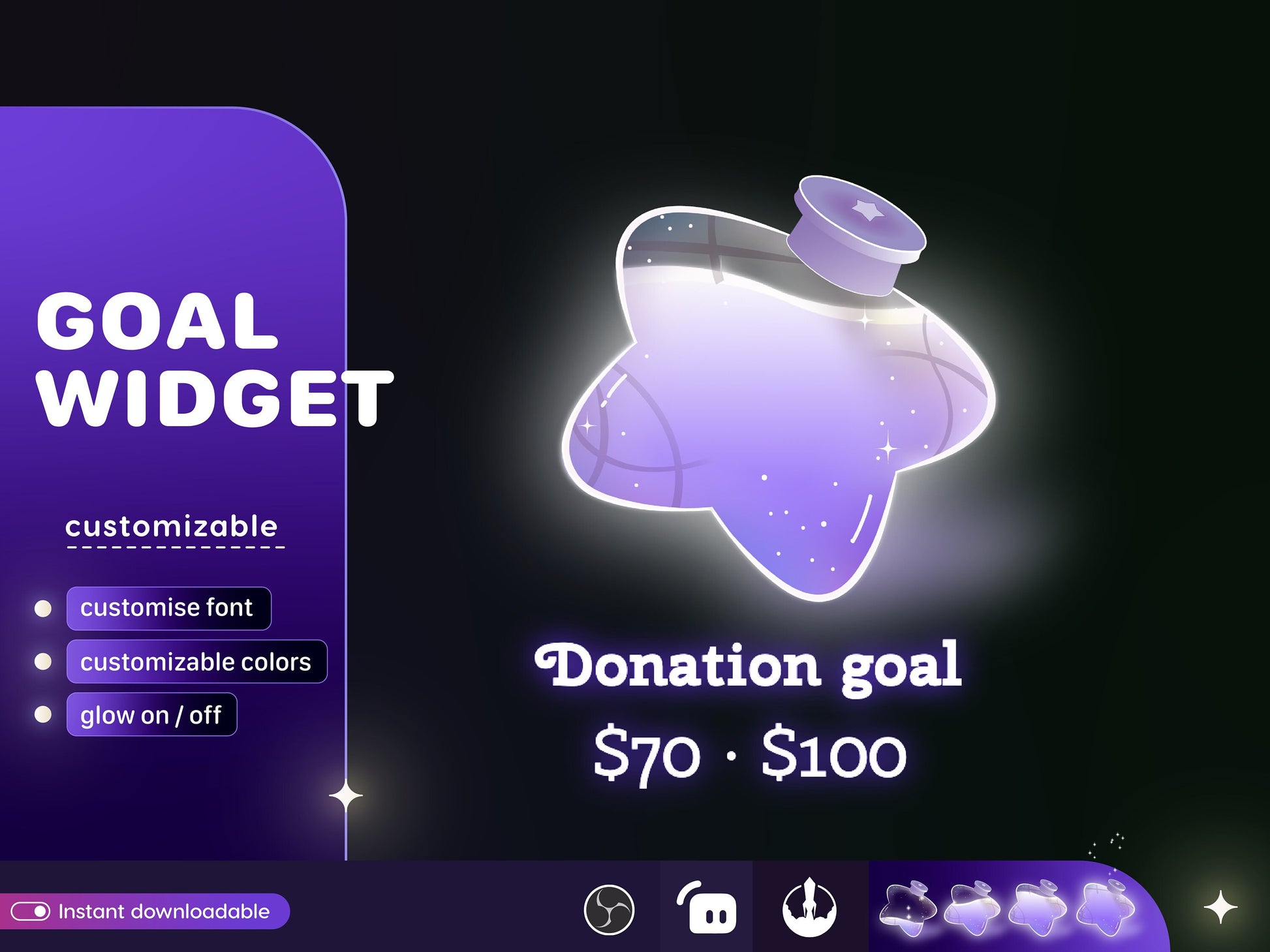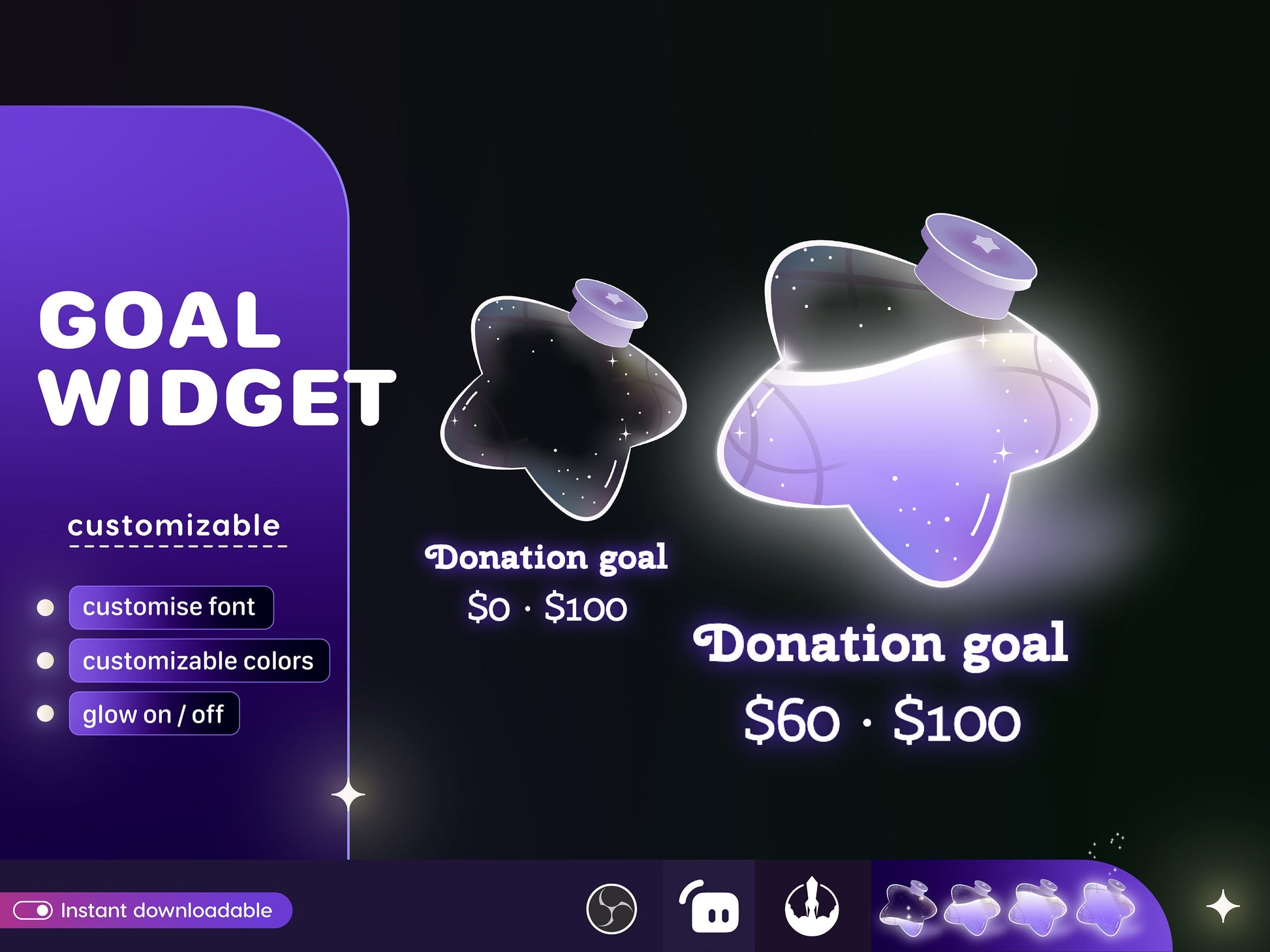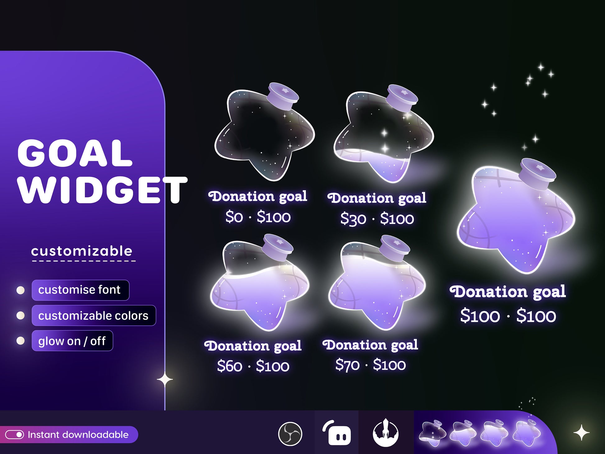 Star Bottle Glass Goal Widget-Cute Minimal Customizable Goal Widget for Twitch Streamers -Streamelements StreamLabs OBS