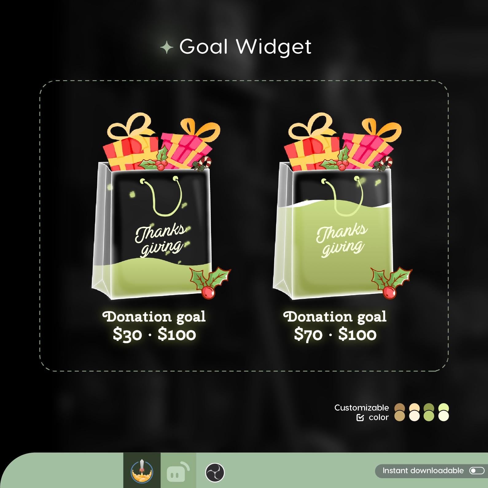 Thanks Giving Tot Bag Liquid Filling Goal Widget is fully customisable for Twitch Streamlabs and Streamelements