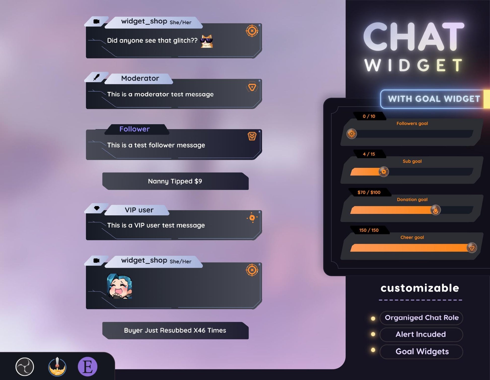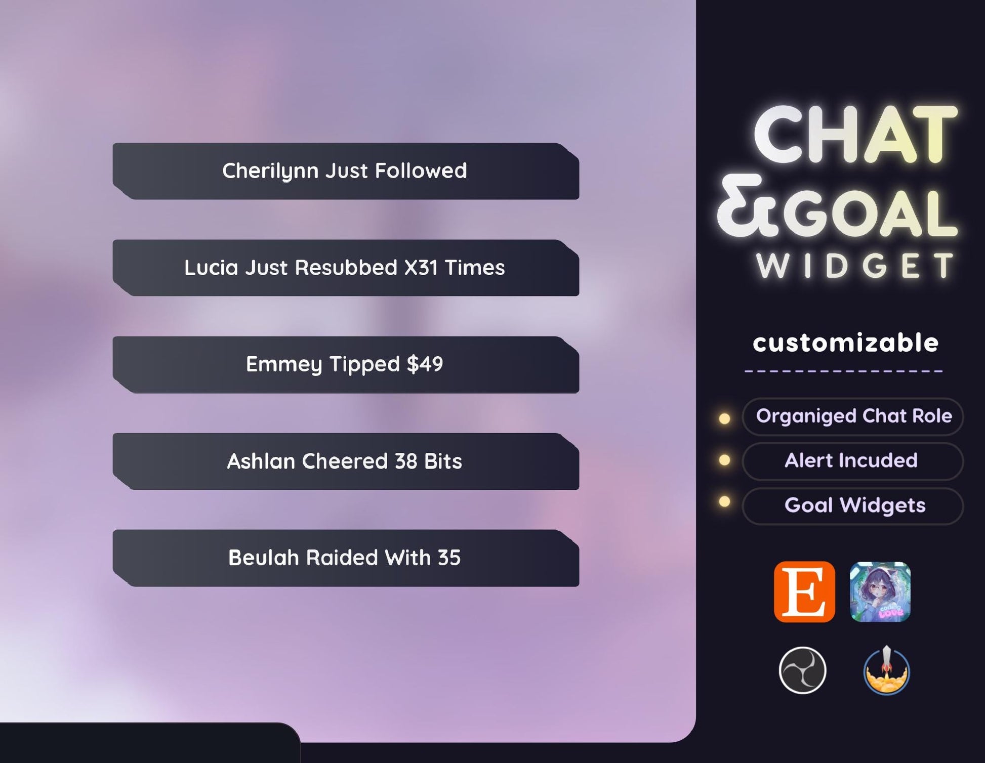 💜Event alerts such as followers, subscribers, tips, and cheers are displayed in the chat.