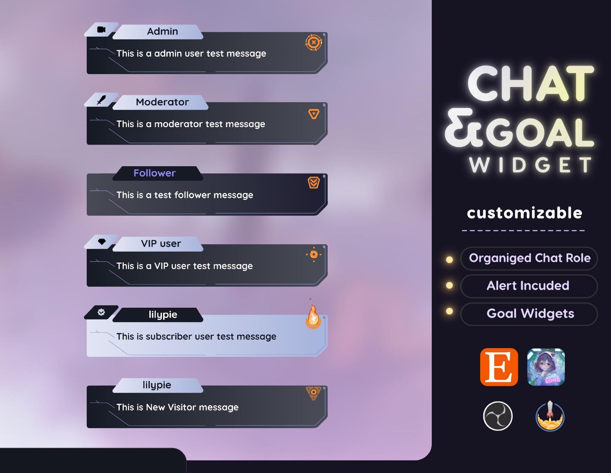 💜The chat widget includes role icons for Twitch using Streamelements Only and for using a CSS file.